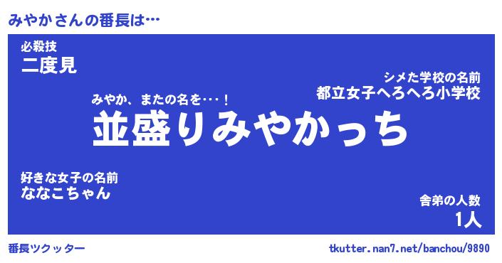 | ファンタジー風あだ名 | 『ミヤフェル』『エターナルミヤカー』 |