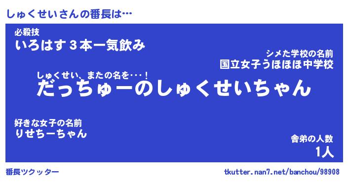 | ポケモン風あだ名 | 『シュチュウ』『シュクダネ』 |