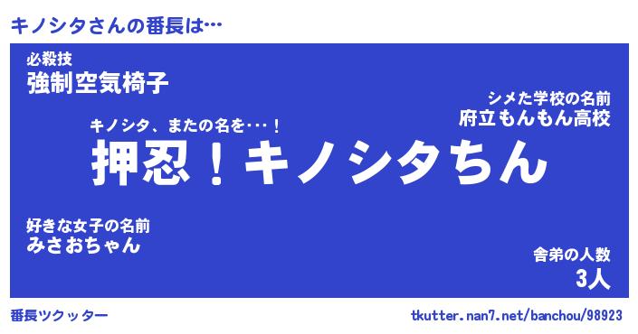 | 肩書あだ名 | 『キノシタ社長』『キノシタ総理大臣』 |