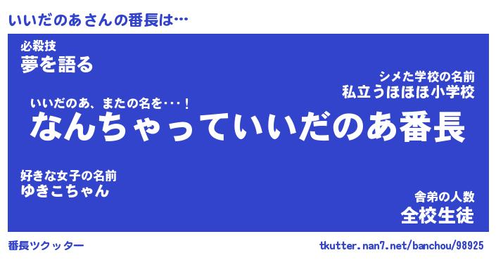 | 伝説のあだ名 | 『伝説のスナイパーいいだのあ』 |