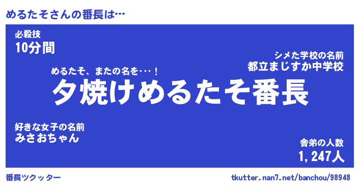 | 肩書あだ名 | 『めるたそ店長』『めるたそ大統領』 |