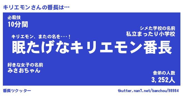 | ピコ太郎風あだ名 | 『キコ二郎』『ピキ一郎』『キリ六郎』 |