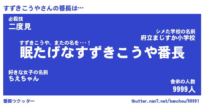 | ポケモン風あだ名 | 『スズチュウ』『スズキダネ』 |
