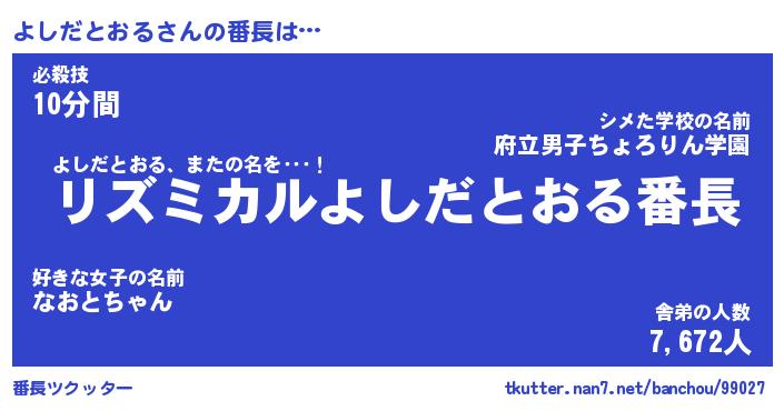 | ポケモン風あだ名 | 『ヨシチュウ』『ヨシダダネ』 |