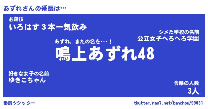 | 意味不明あだ名 | 『ペロリンあずれ』『あずれフォーエバー』 |