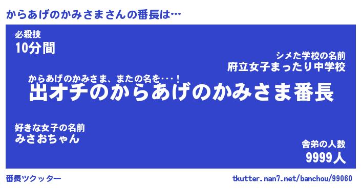 | 伝説のあだ名 | 『伝説の竜騎士からあげのかみさま』 |