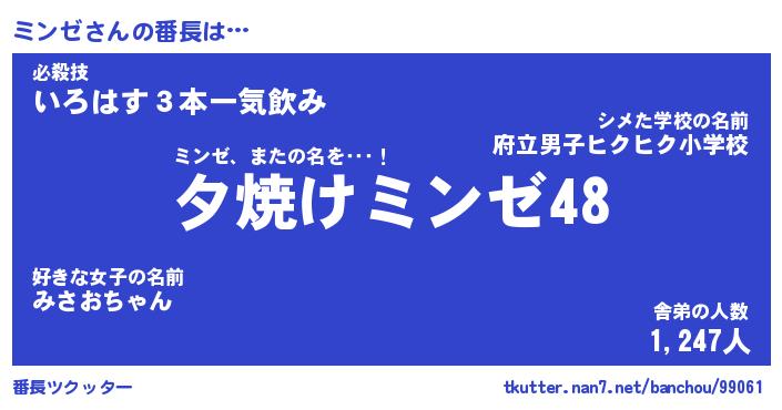 | ヒーロー風カッコイイあだ名 | 『スーパーミンゼ』『ウルトラミンゼマン』 |