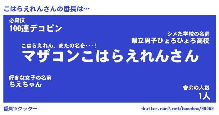 | ヘコむあだ名 | 『こはにゅー』『なまこ酢』 |