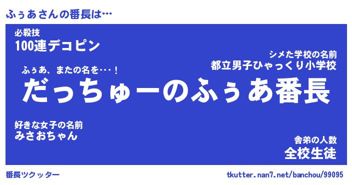 | ヒーロー風カッコイイあだ名 | 『スーパーフゥア』『ウルトラふぅあマン』 |
