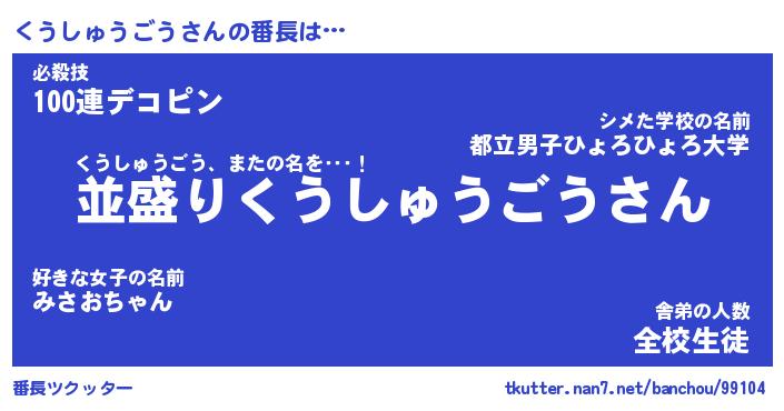 | ヒーロー風カッコイイあだ名 | 『スーパークウシュウゴウ』 |