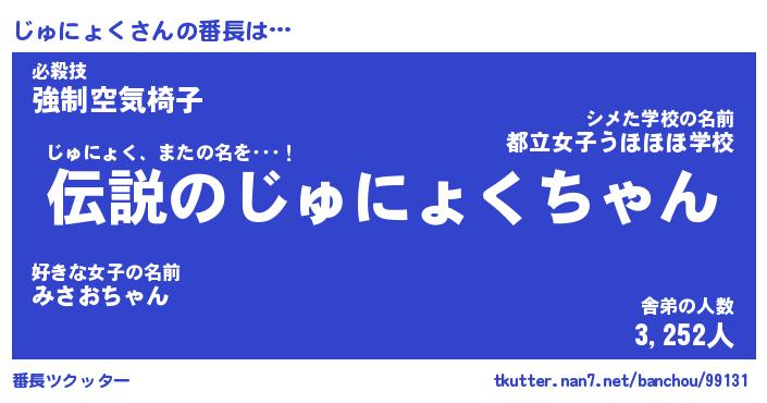 | 肩書あだ名 | 『じゅにょく店長』『じゅにょく大統領』 |