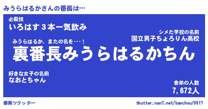 | ヒーロー風カッコイイあだ名 | 『スーパーミウラハルカ』『炎刃騎士ミウ』 |