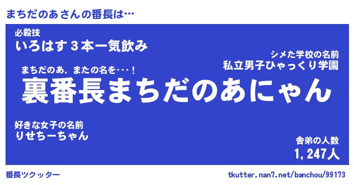 | 2回繰り返すあだ名 | 『まちまち』『ままちち』『ぬめぬめ』 |