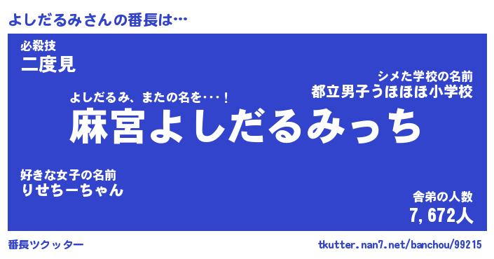 | ポケモン風あだ名 | 『ヨシチュウ』『ヨシダダネ』 |