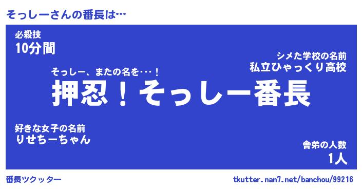 | 2回繰り返すあだ名 | 『そっそっ』『そそっっ』『あんあん』 |