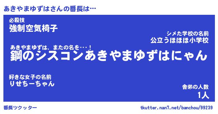 | 伝説のあだ名 | 『封印されしスナイパーあきやまゆずは』 |