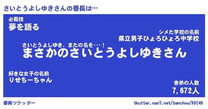 | 男性向けラノベタイトル風あだ名 | 『さいとうよしゆきの憂鬱』 |
