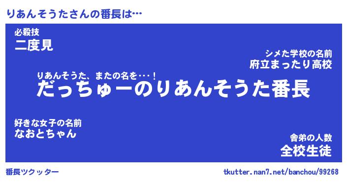 | 伝説のあだ名 | 『伝説のスナイパーりあんそうた』 |