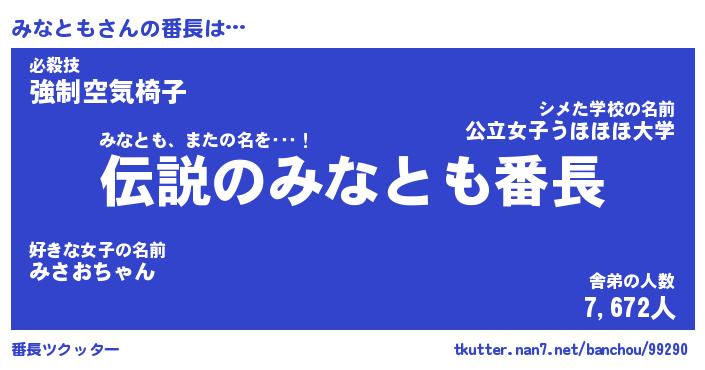 | 意味不明あだ名 | 『ペロリンみなとも』『永久保存みなとも』 |