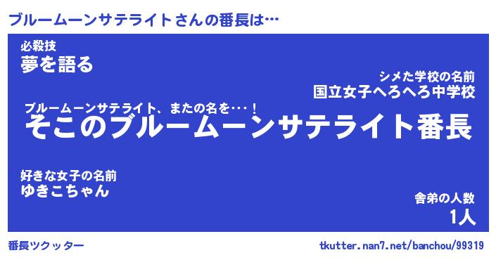 | 男性向けラノベタイトル風あだ名 | 『ブルームーンサテライトの憂鬱』 |