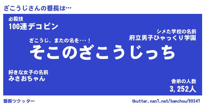 | ヒーロー風カッコイイあだ名 | 『スーパーザコウジ』『黄金騎士ザコ』 |