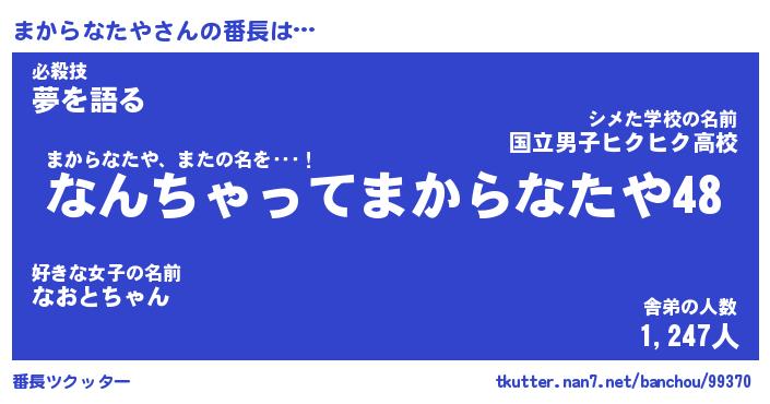 | 肩書あだ名 | 『まからなたやCEO』『まからなたや大統領』 |