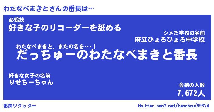 | ピコ太郎風あだ名 | 『ワコ十郎』『ピワ太郎』『ワタ一郎』 |