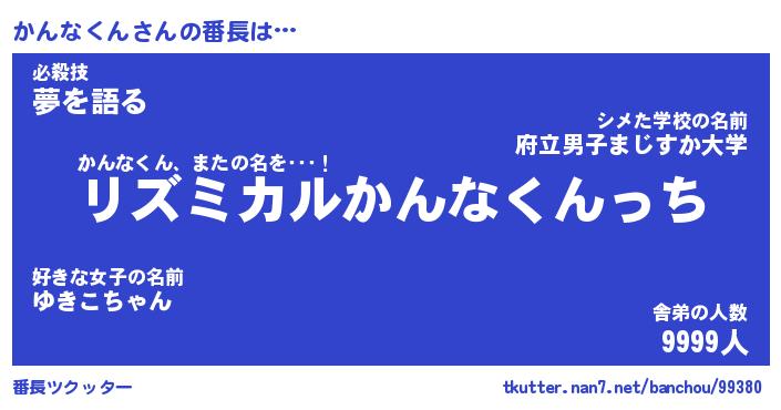 | 肩書あだ名 | 『かんなくん店長』『かんなくん国家主席』 |