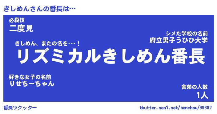 | ファンタジー風あだ名 | 『キシフェル』『エターナルキシメンー』 |