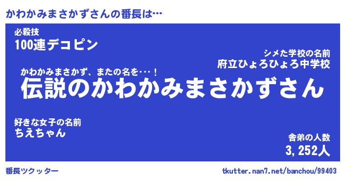 | 肩書あだ名 | 『かわかみまさかず店長』 |