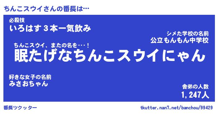 | ヒーロー風カッコイイあだ名 | 『スーパーチンコスウイ』『銀牙騎士チン』 |