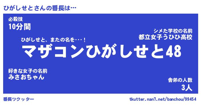 | ファンタジー風あだ名 | 『ヒガフェル』『エターナルヒガシセトー』 |