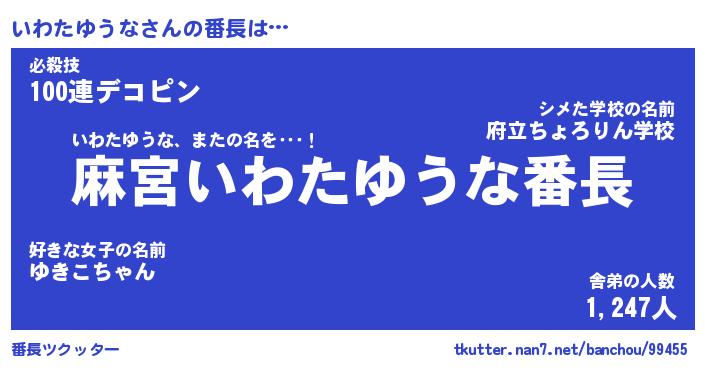 | ヒーロー風カッコイイあだ名 | 『スーパーイワタユウナ』『銀牙騎士イワ』 |