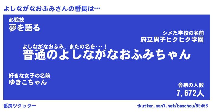 | 男性向けラノベタイトル風あだ名 | 『よしながなおふみの憂鬱』 |