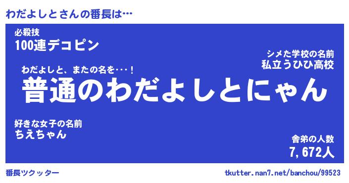 | ファンタジー風あだ名 | 『ワダフェル』『エターナルワダヨシトー』 |