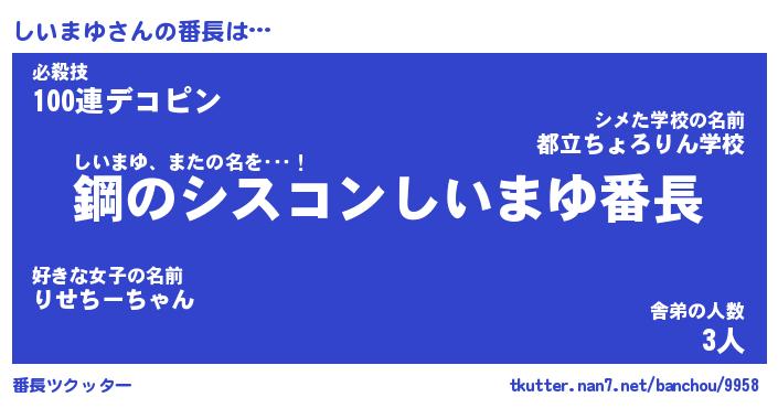 | 意味不明あだ名 | 『ペロリンしいまゆ』『永久保存しいまゆ』 |