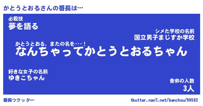 | 恥ずかしいあだ名 | 『プリティーかとうとおる』『かとっちょ』 |