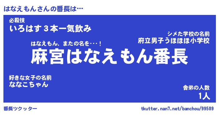 | 2回繰り返すあだ名 | 『はなはな』『ははなな』『あんあん』 |