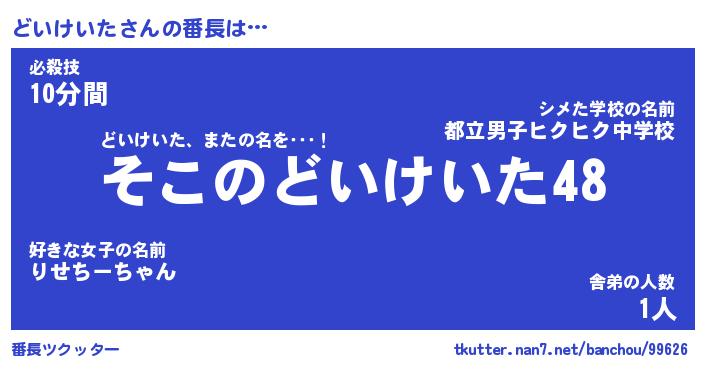 | 肩書あだ名 | 『どいけいた店長』『どいけいた総理大臣』 |