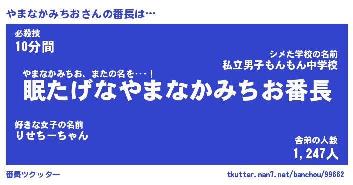 | 肩書あだ名 | 『やまなかみちお御曹司』 |