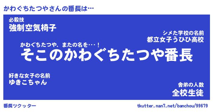 | 肩書あだ名 | 『かわぐちたつや御曹司』 |