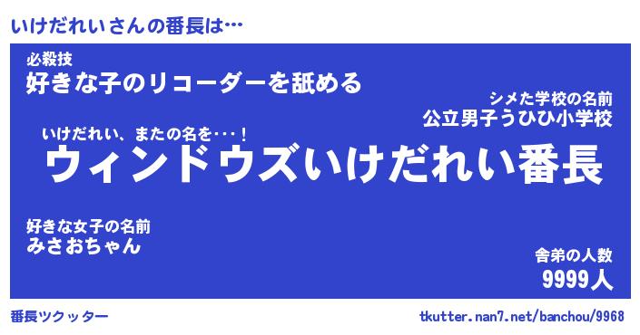 | ピコ太郎風あだ名 | 『イコ史郎』『ピイ六郎』『イケ二郎』 |