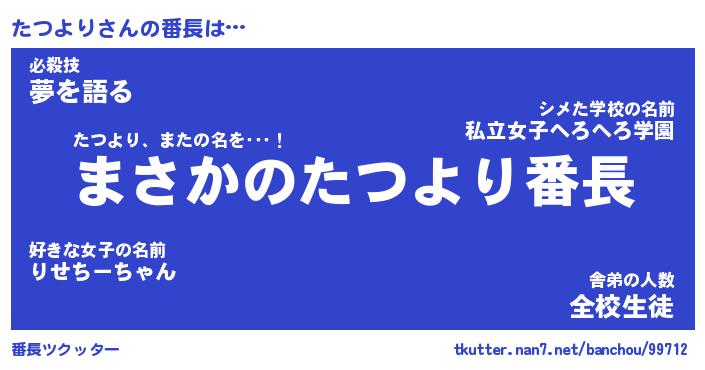 | 意味不明あだ名 | 『ペロリンたつより』『永久保存たつより』 |