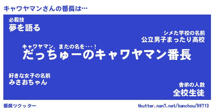 | ヒーロー風カッコイイあだ名 | 『スーパーキャワヤマン』『暗黒騎士キャ』 |