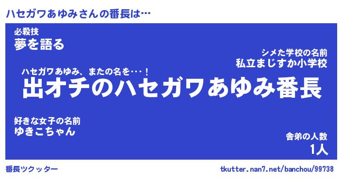 | ポケモン風あだ名 | 『ハセチュウ』『ハセガダネ』 |