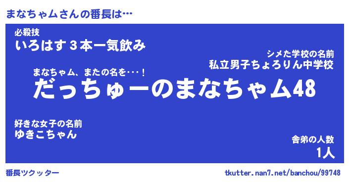 | 伝説のあだ名 | 『伝説のスナイパーまなちゃム』 |