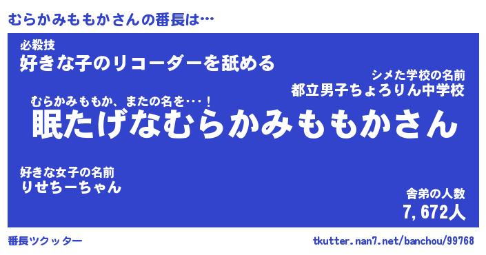 | 伝説のあだ名 | 『封印されしスナイパーむらかみももか』 |