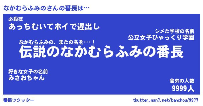 | 伝説のあだ名 | 『伝説のスナイパーなかむらふみの』 |