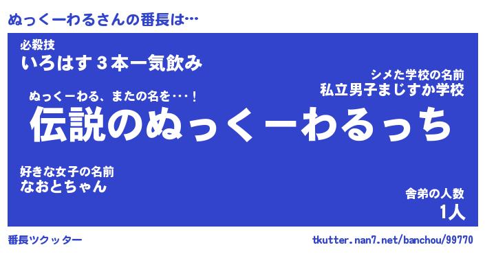 | ヒーロー風カッコイイあだ名 | 『スーパーヌックーワル』『銀牙騎士ヌッ』 |