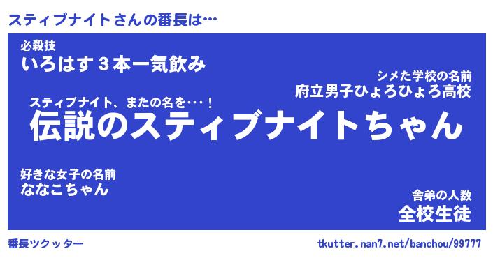 | 伝説のあだ名 | 『伝説のスナイパースティブナイト』 |